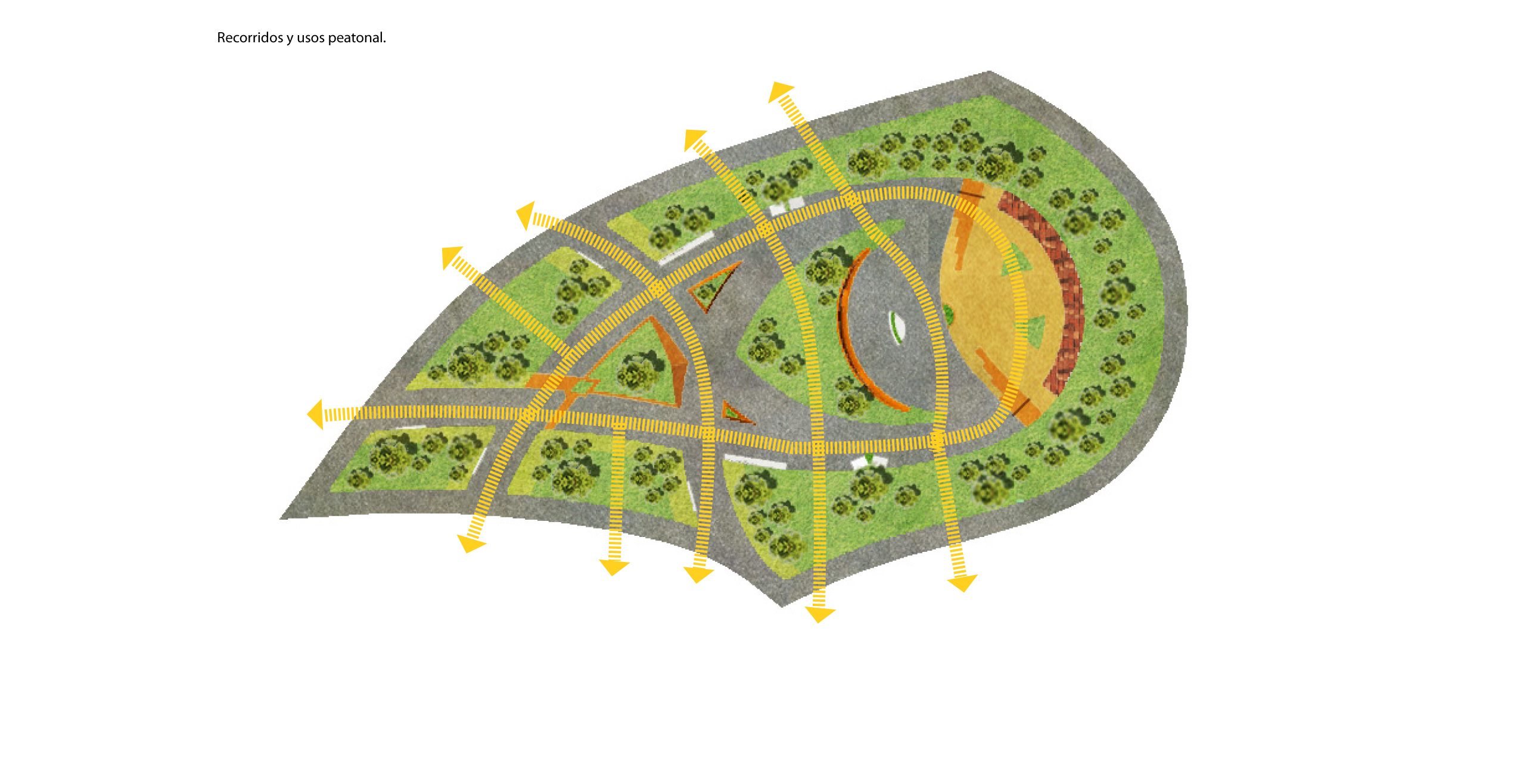 La pianta prevede creazione di mobilità e ombra, con rispetto del paesaggio e di tutta la comunità dei cittadini che possono attraversare ed usufruire insieme del nuovo spazio pubblico.